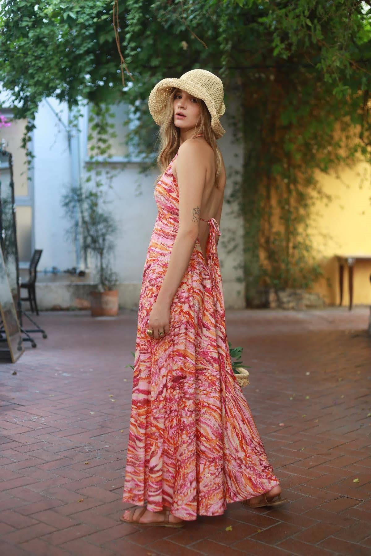 Pink Tied Rope Strap Backless Silk Dress (KE-RMR-021-IP-PE-STD)