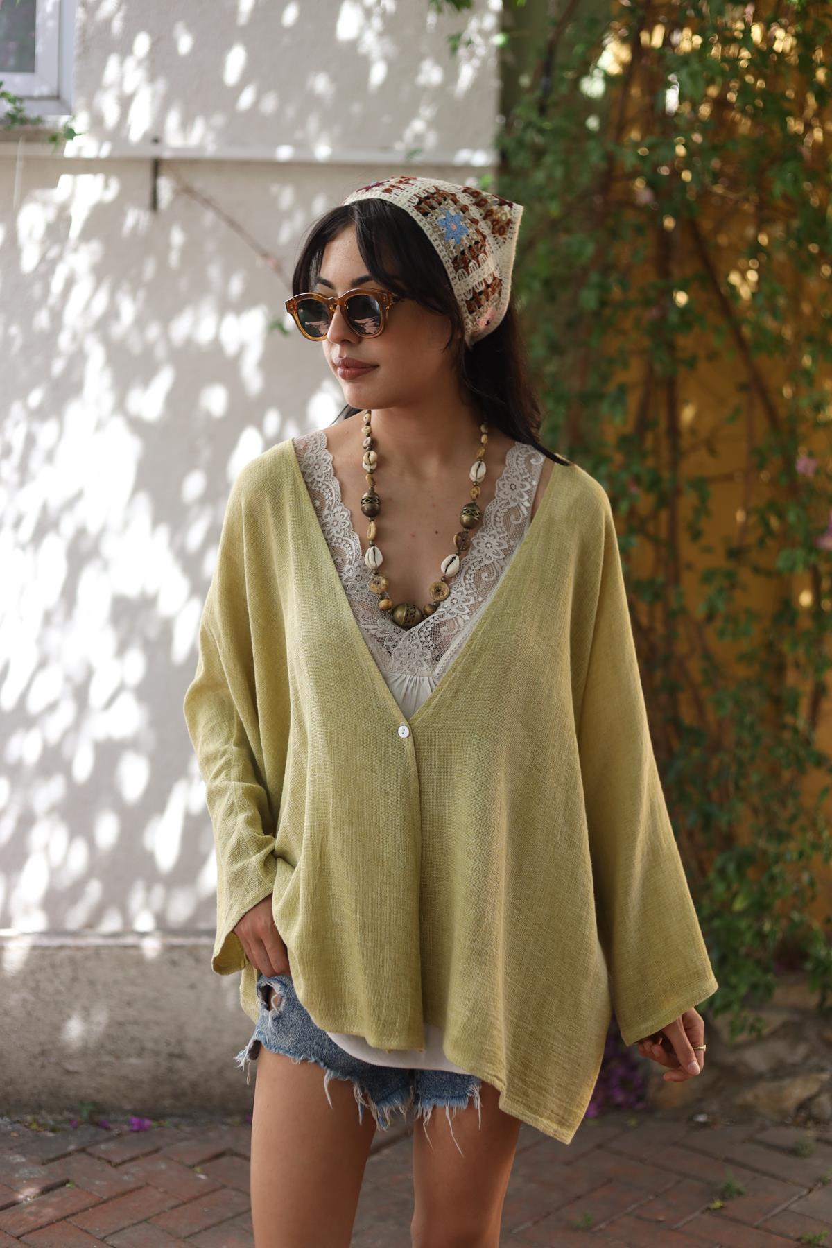 Pistachio Green Single Button Linen Cardigan (KH-FAL-002-KTN-FYE-STD)