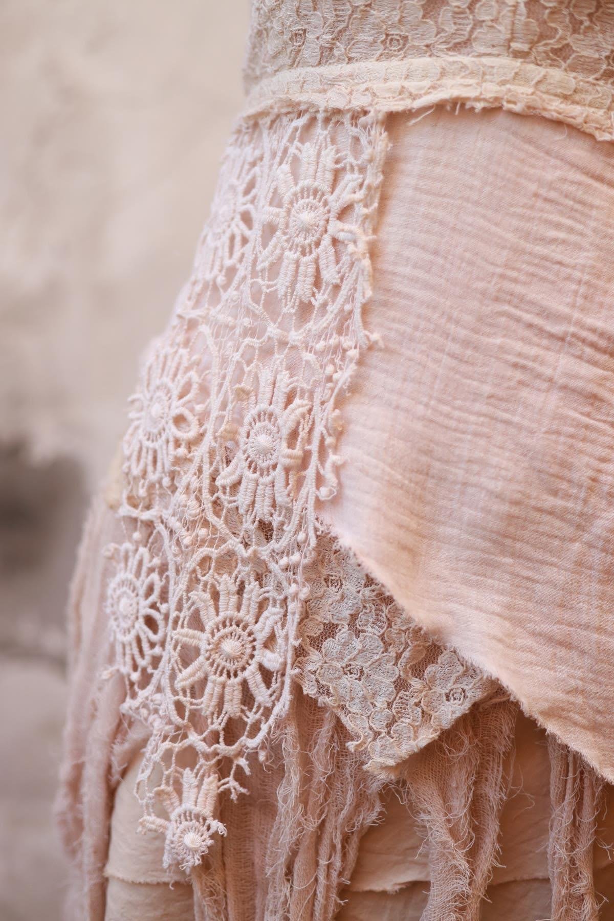 Pudra Pembe Bağlamalı Dantelli Parçalı Crop
