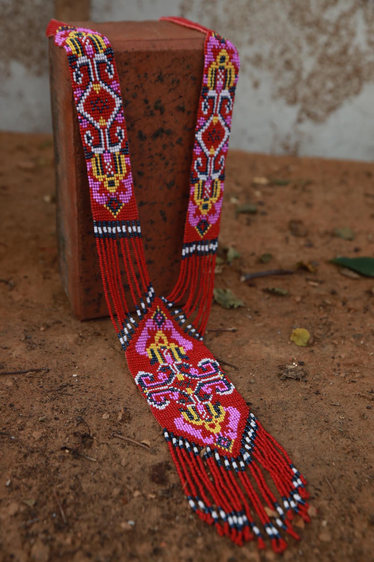 Red Bead Knitted Tie Necklace (TA-KO-1427)