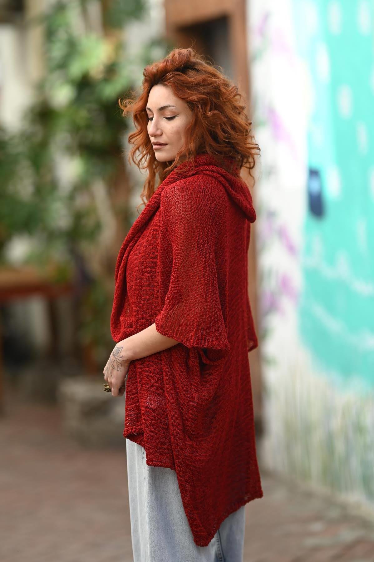 Red Mercerized Hoodie Cardigan