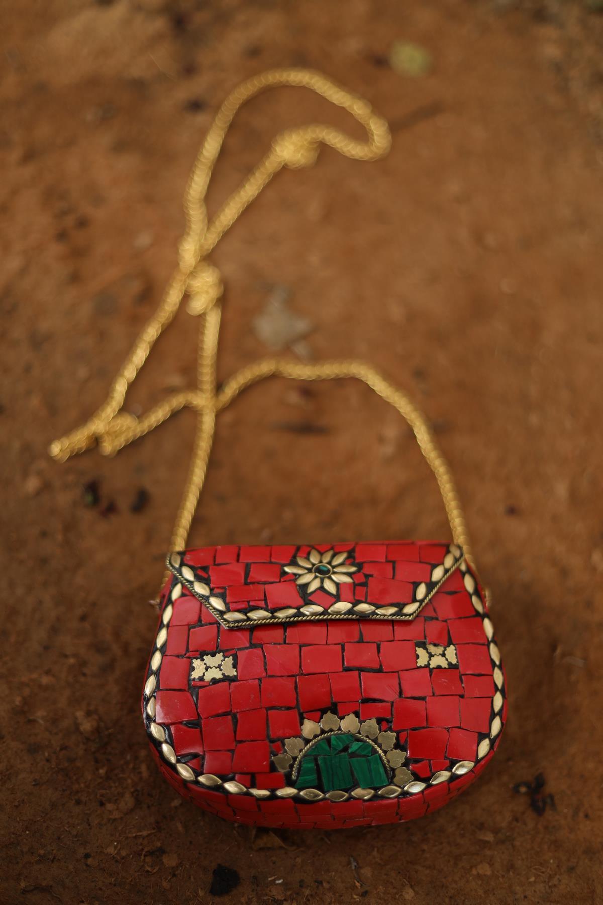 Red Stone Detailed Special Design Elegant Bag (ACNT-AS-040-MTL-KI-STD)