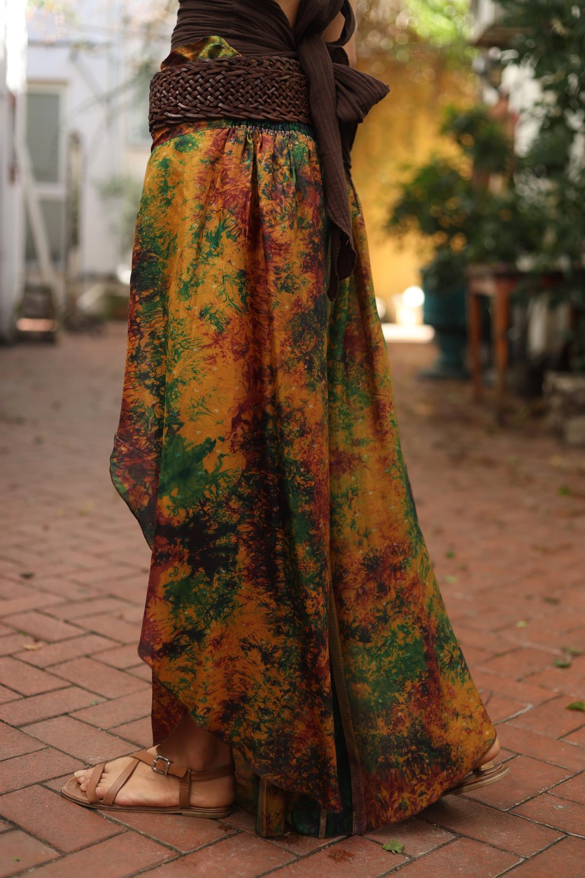 Renkli Batik Desenli İpek Kelebek Pantolon