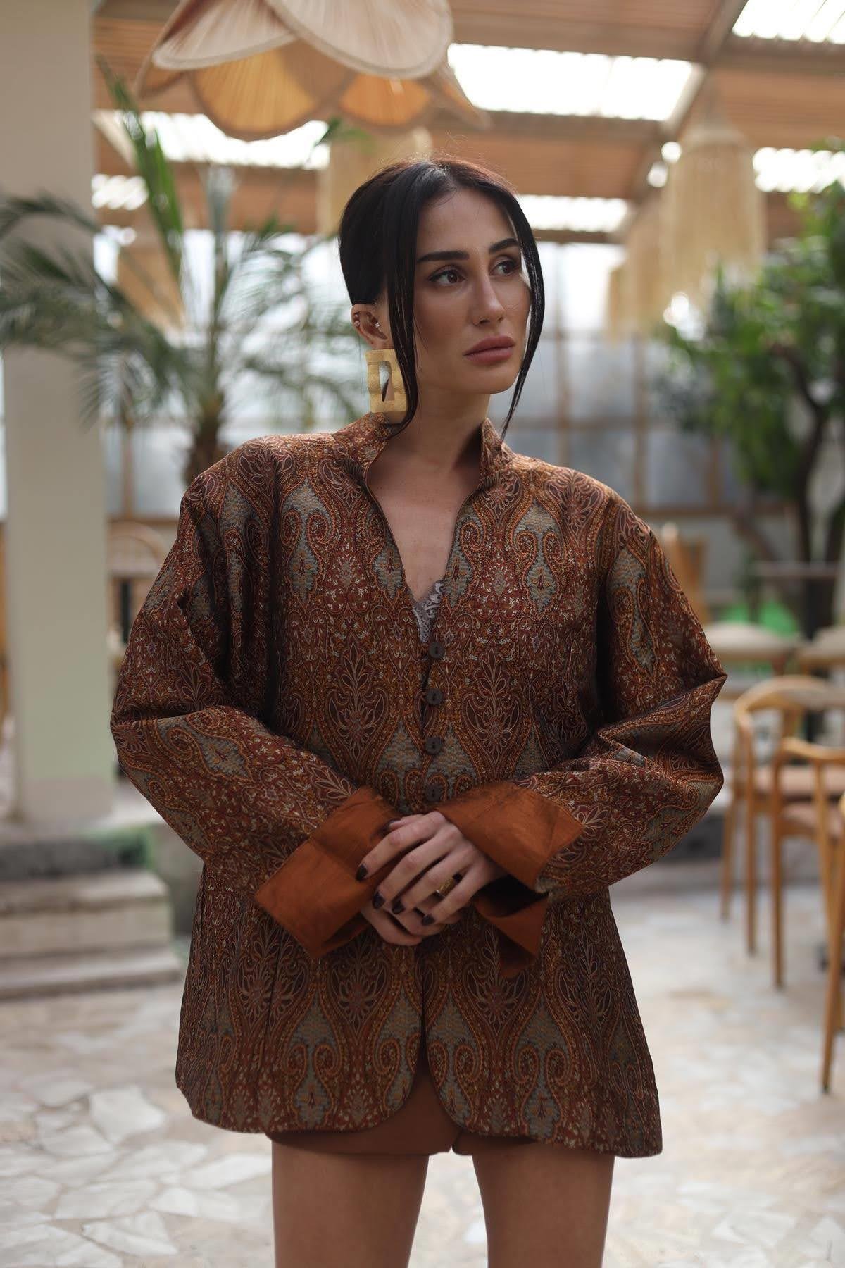 Renkli Desenli Hakim Yaka Ceket - Şaman Butik Renkli Desenli Hakim Yaka Ceket