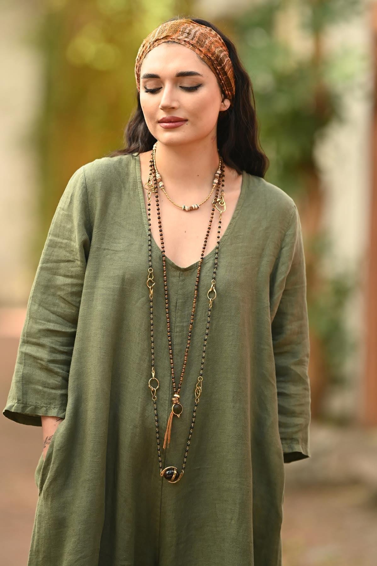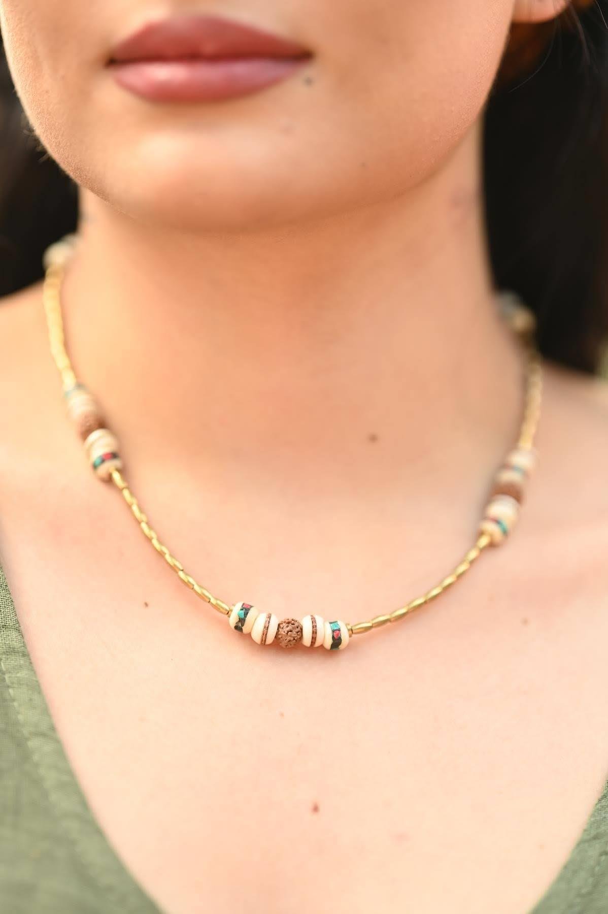 Rudraksha Seed and Embedded Stone Detail Necklace (TA-KO-1390)