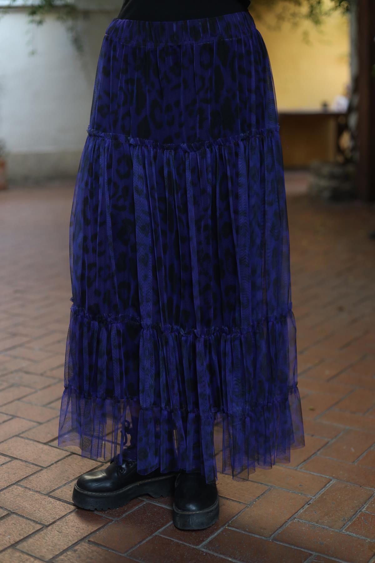 Sax Blue Patterned Layered Tulle Skirt (KET-LAM-001-VI-SMA-STD)
