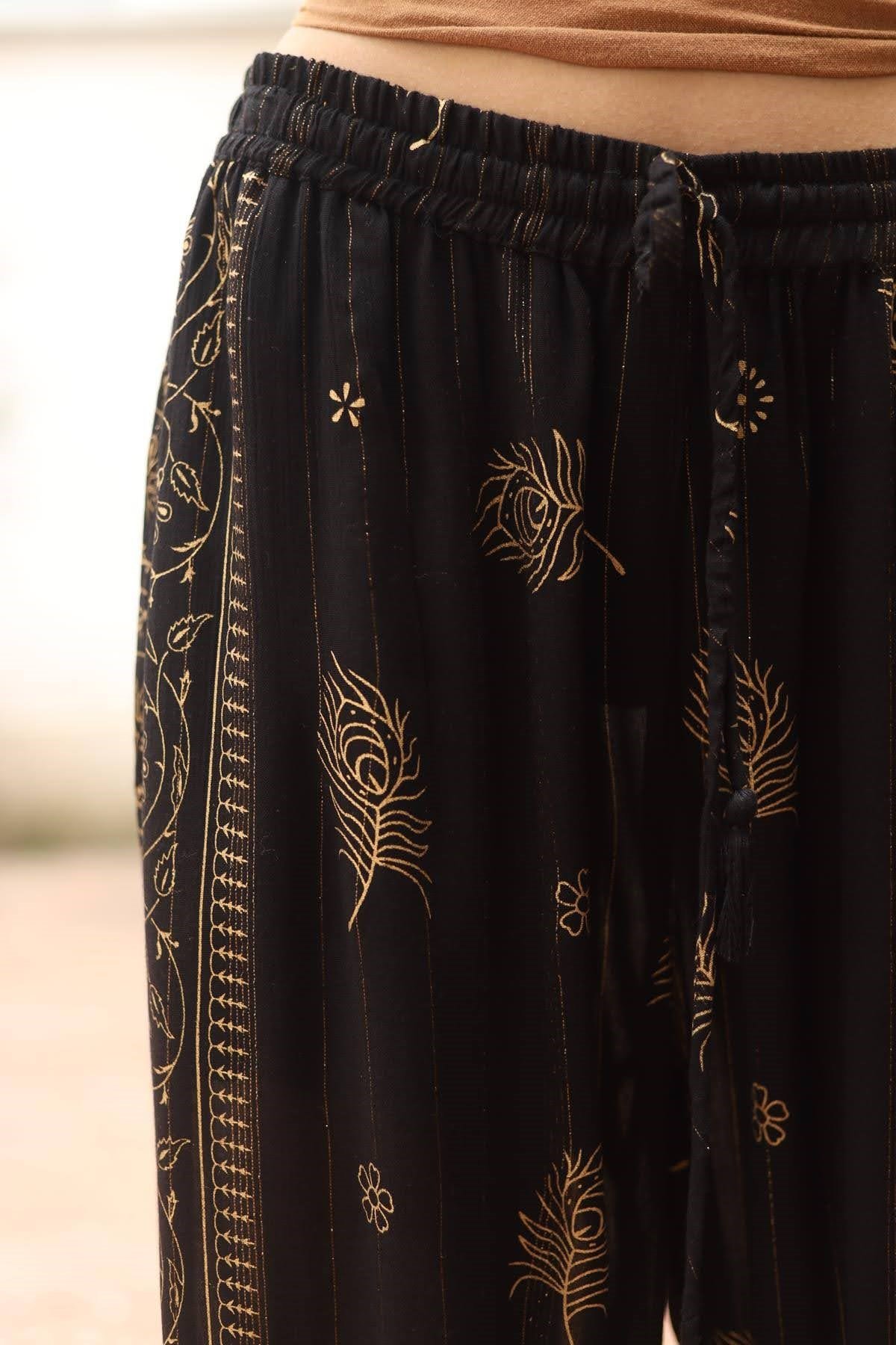 Siyah Desenli Gold Çizgili Pantolon