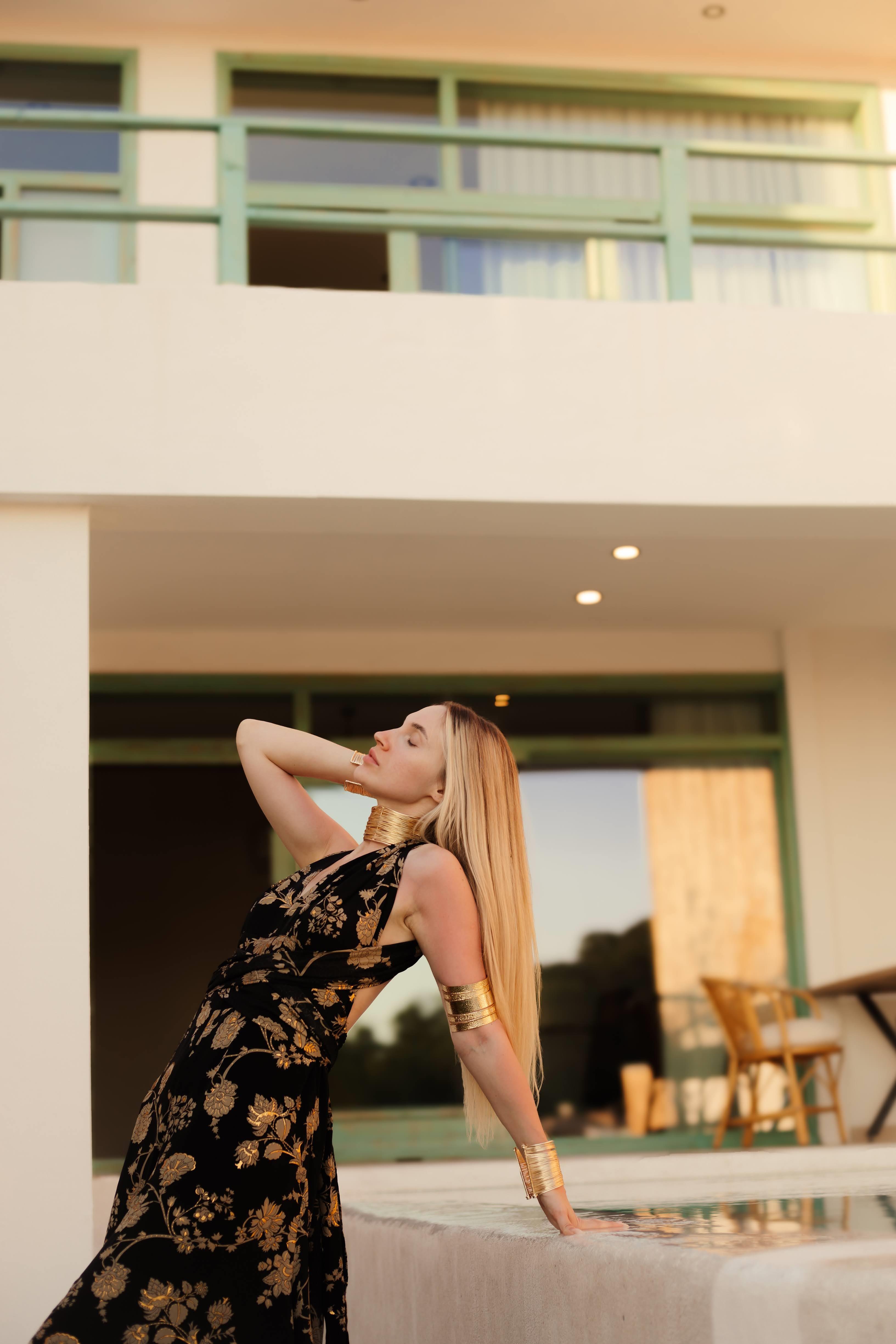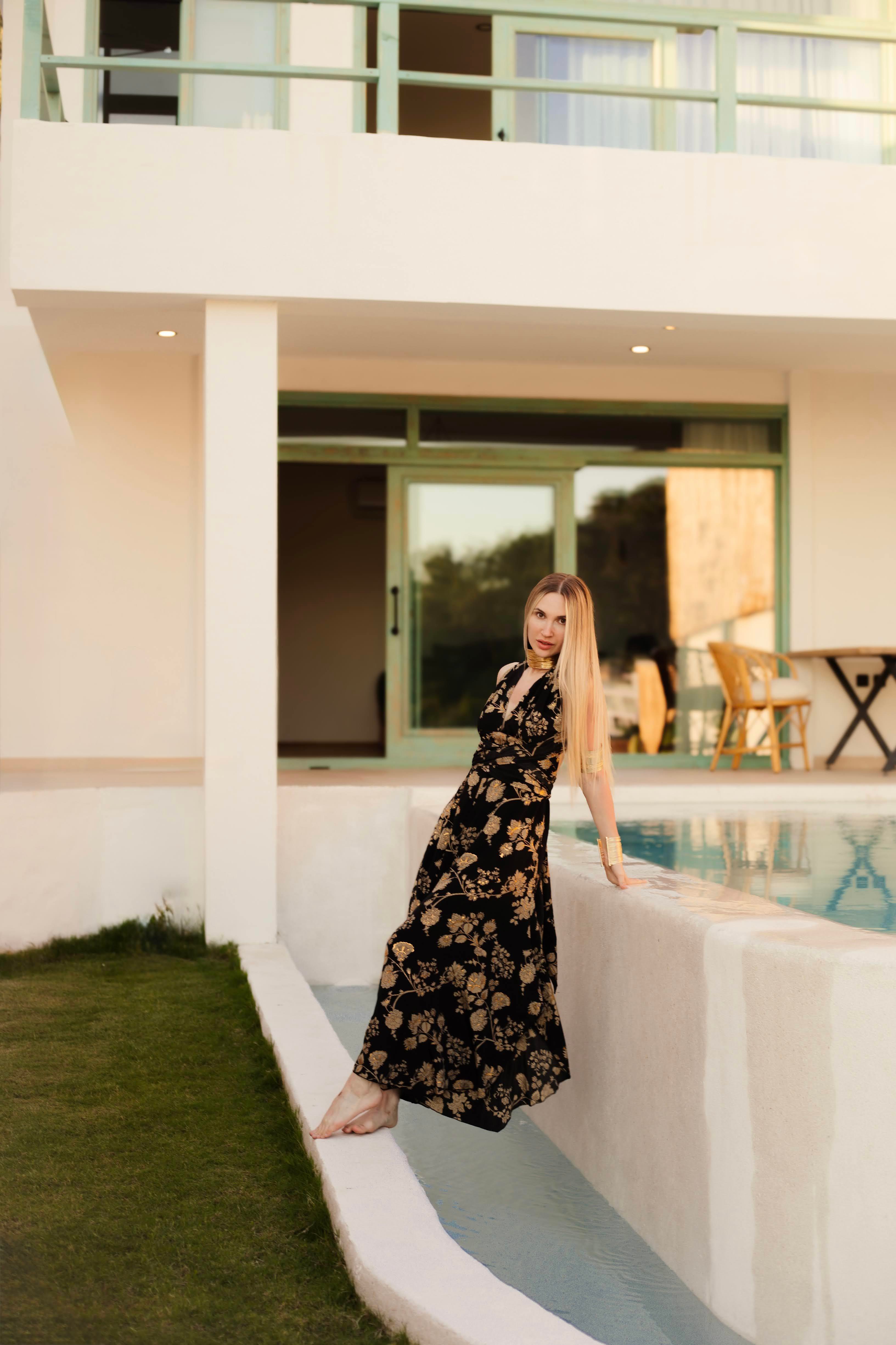 Siyah Desenli İpek Tulum