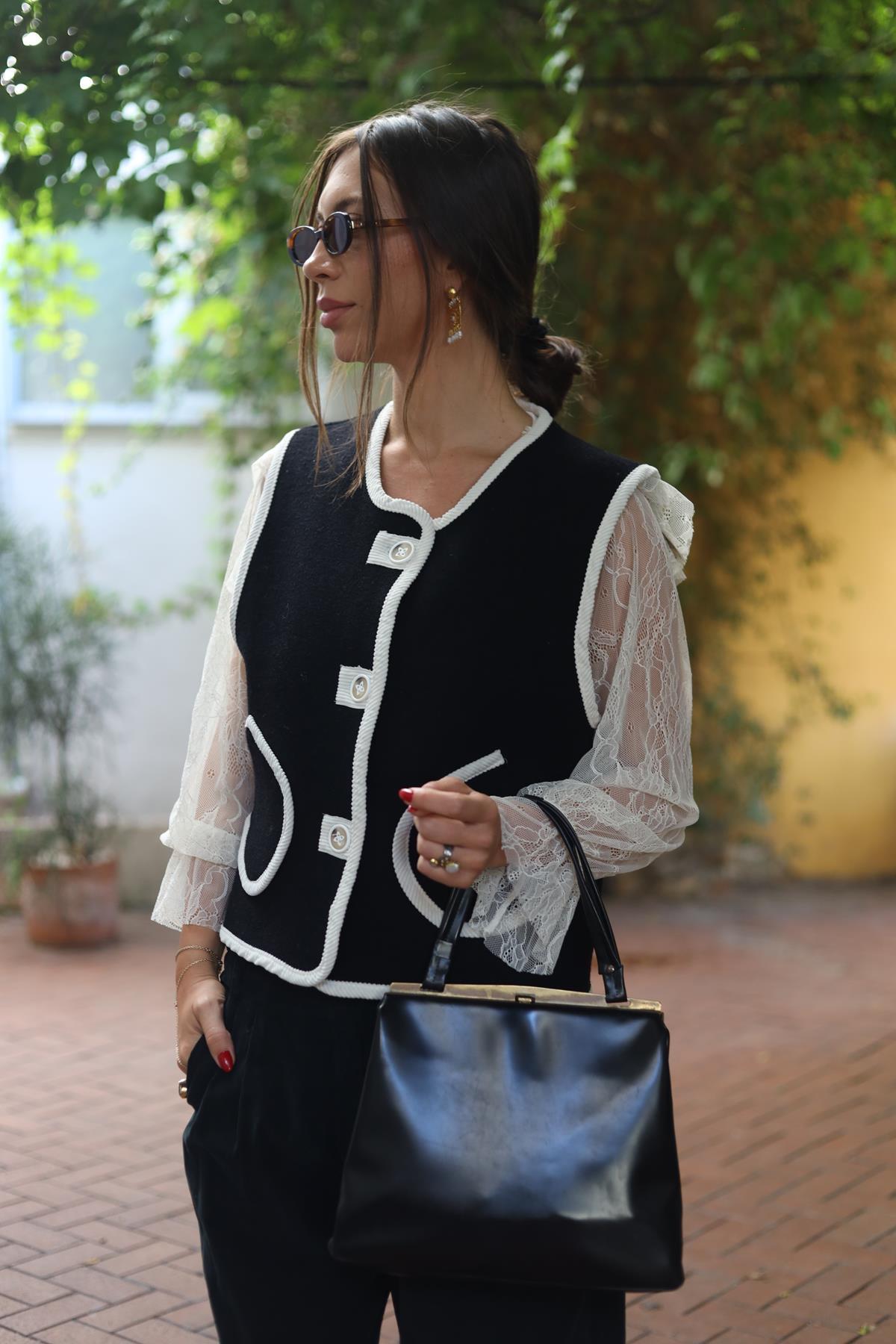 Siyah Fitil Detaylı Yumuşak Doku Yelek