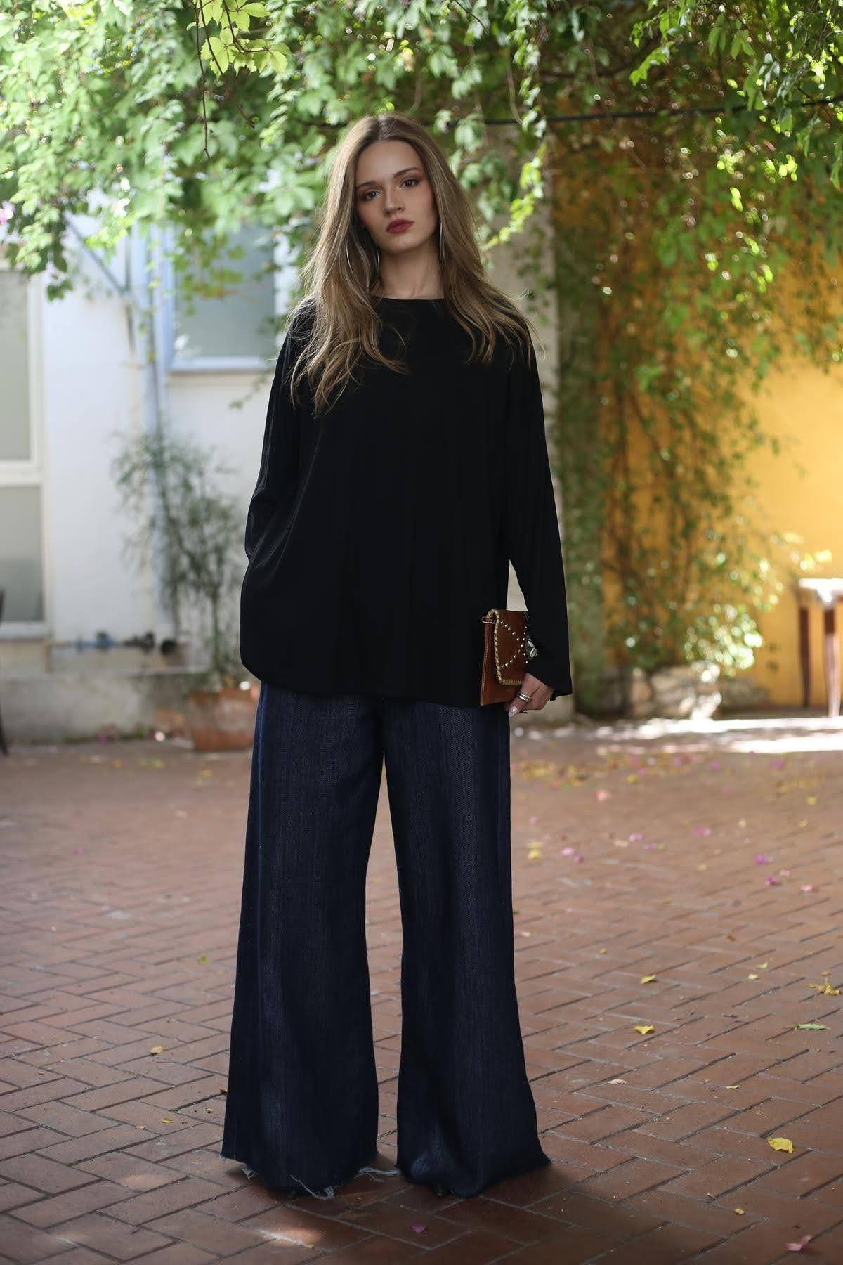 Siyah Salaş Uzun Kollu Bluz