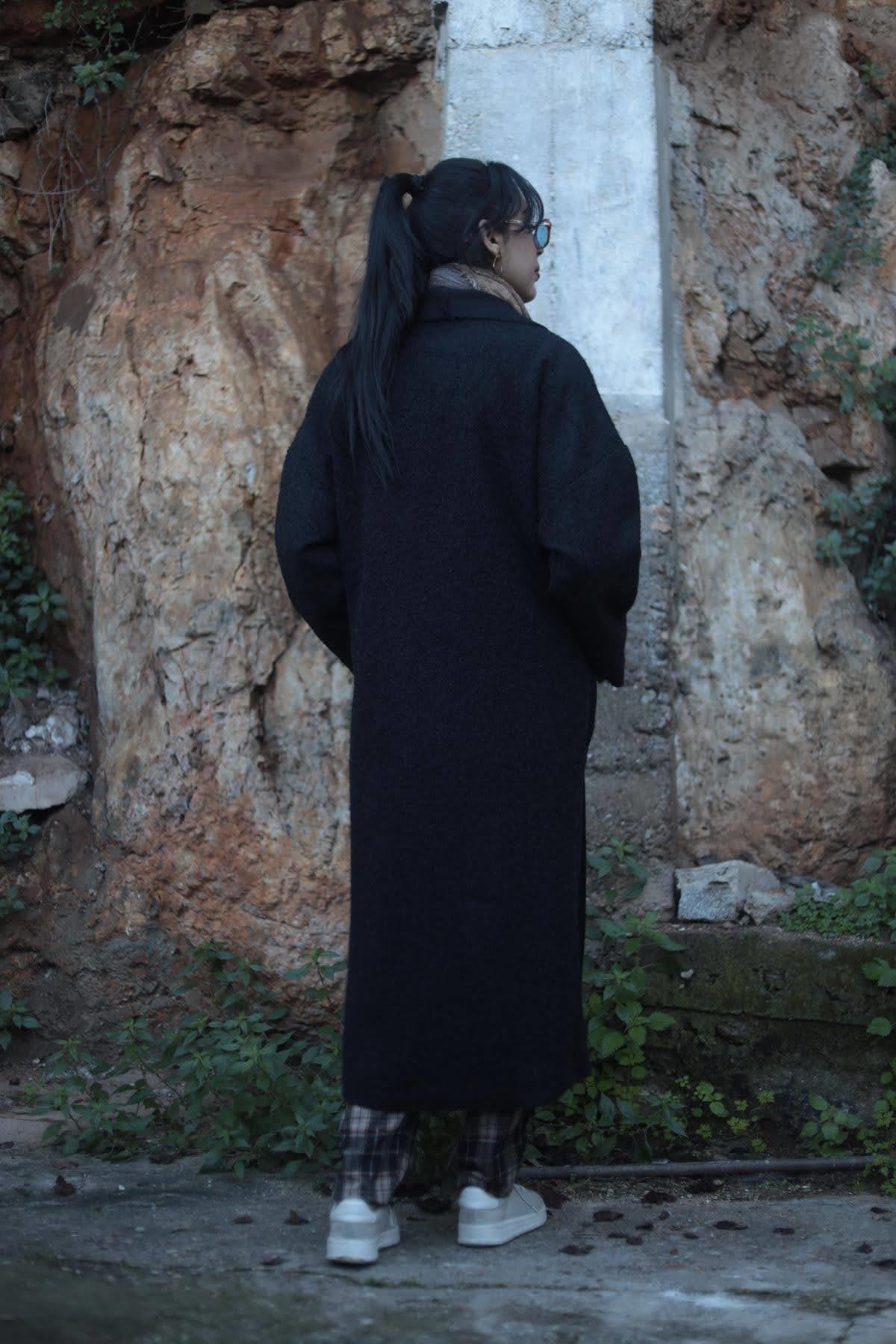 Siyah Şardonlu Keçe Kaban