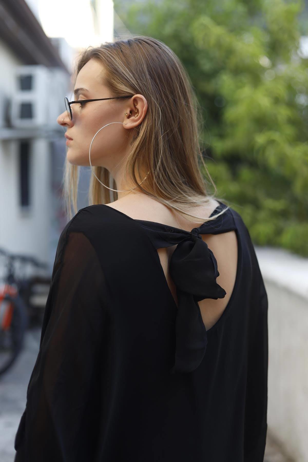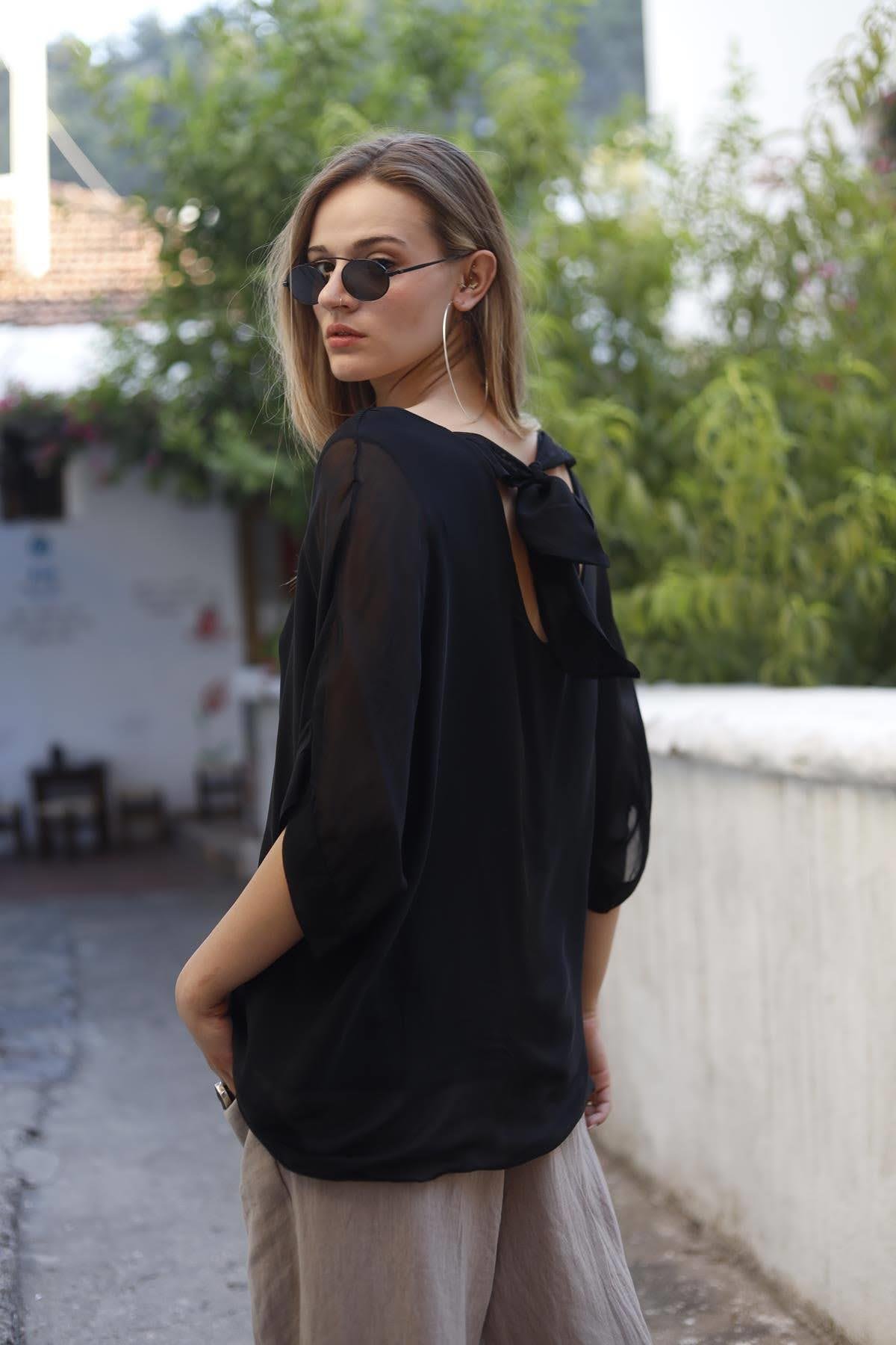 Siyah Sırtı Bağlamalı İpek Bluz (KB-PM-051-IP-SI-STD)