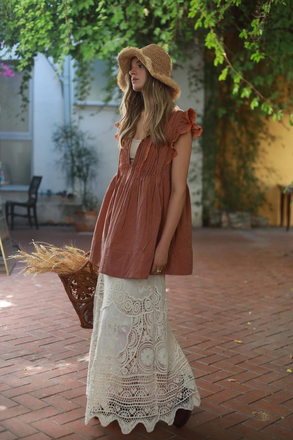 Somon Rengi Çizgili Dantel Detaylı Mini Elbise (KE-RAH-008-PA-SO-STD)