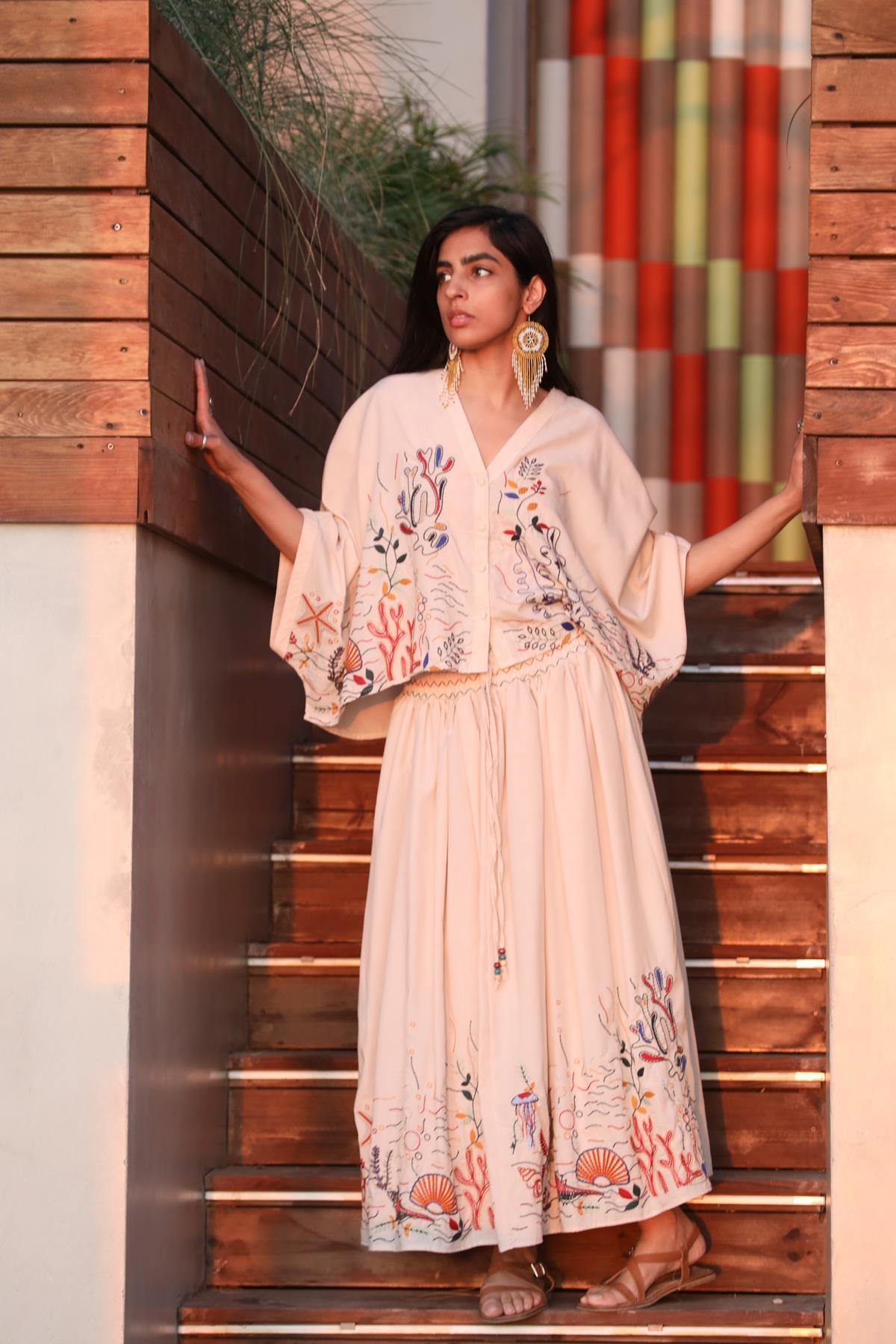 Stone Color Authentic Embroidered Casual Shirt