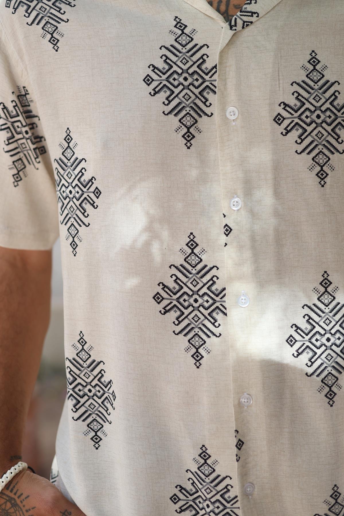 Stone Color Patterned Short Sleeve Men's Shirt (EG-TMS-001-VI-TAS-S)