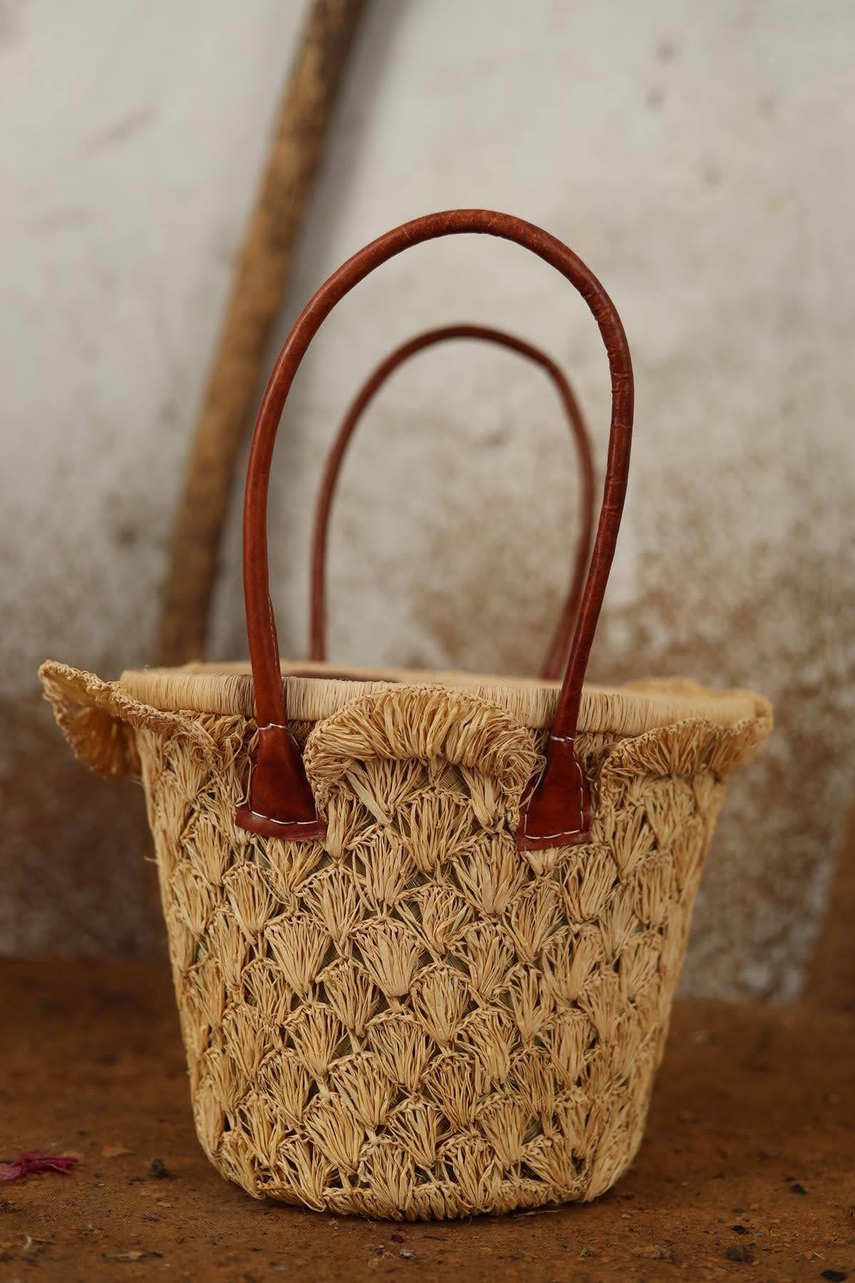 Straw Knitted Leather Handle Bag
