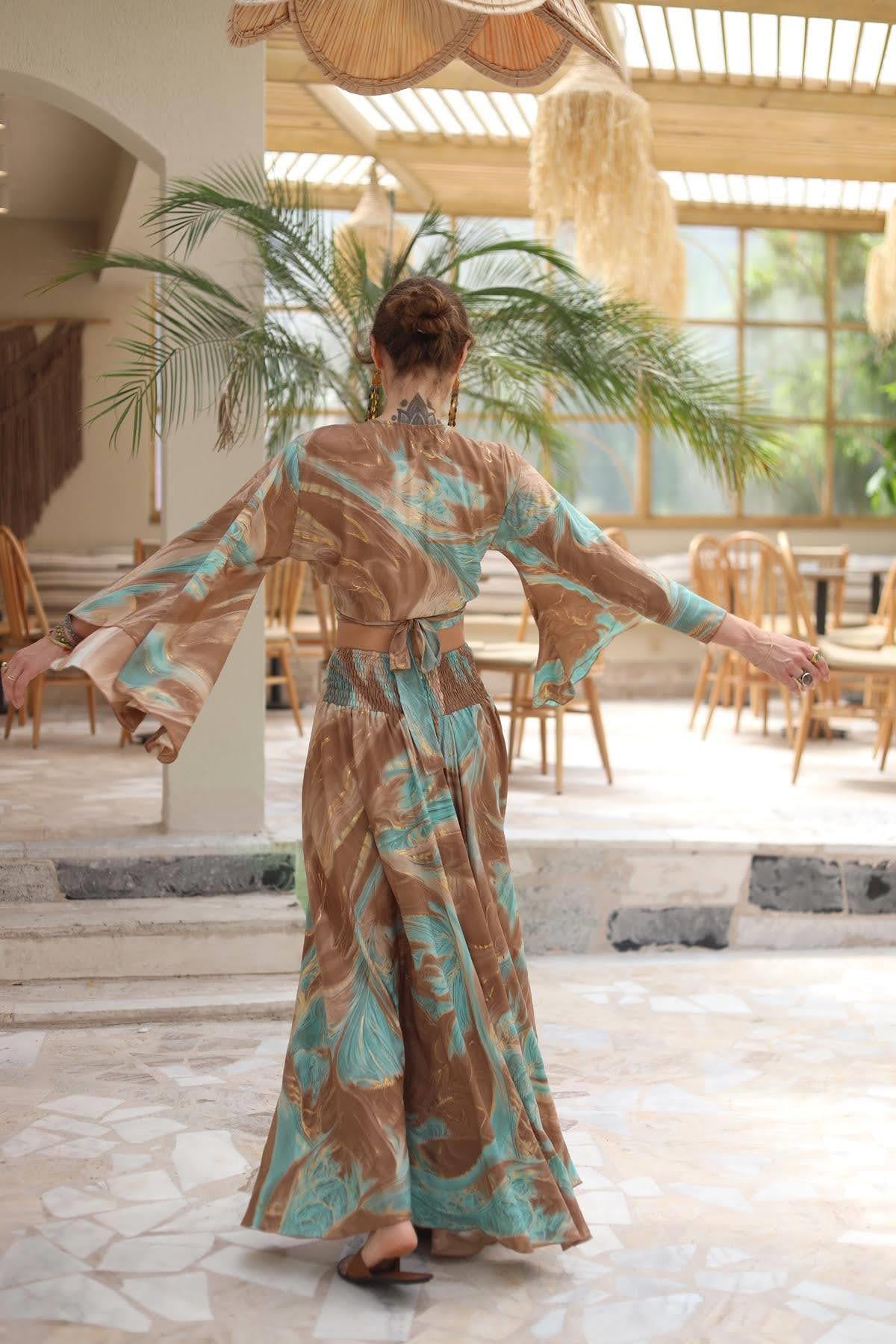 Sütlü Kahve Desenli İpek Pantolon Etek (KP-RMR-003-IP-SKA-STD)