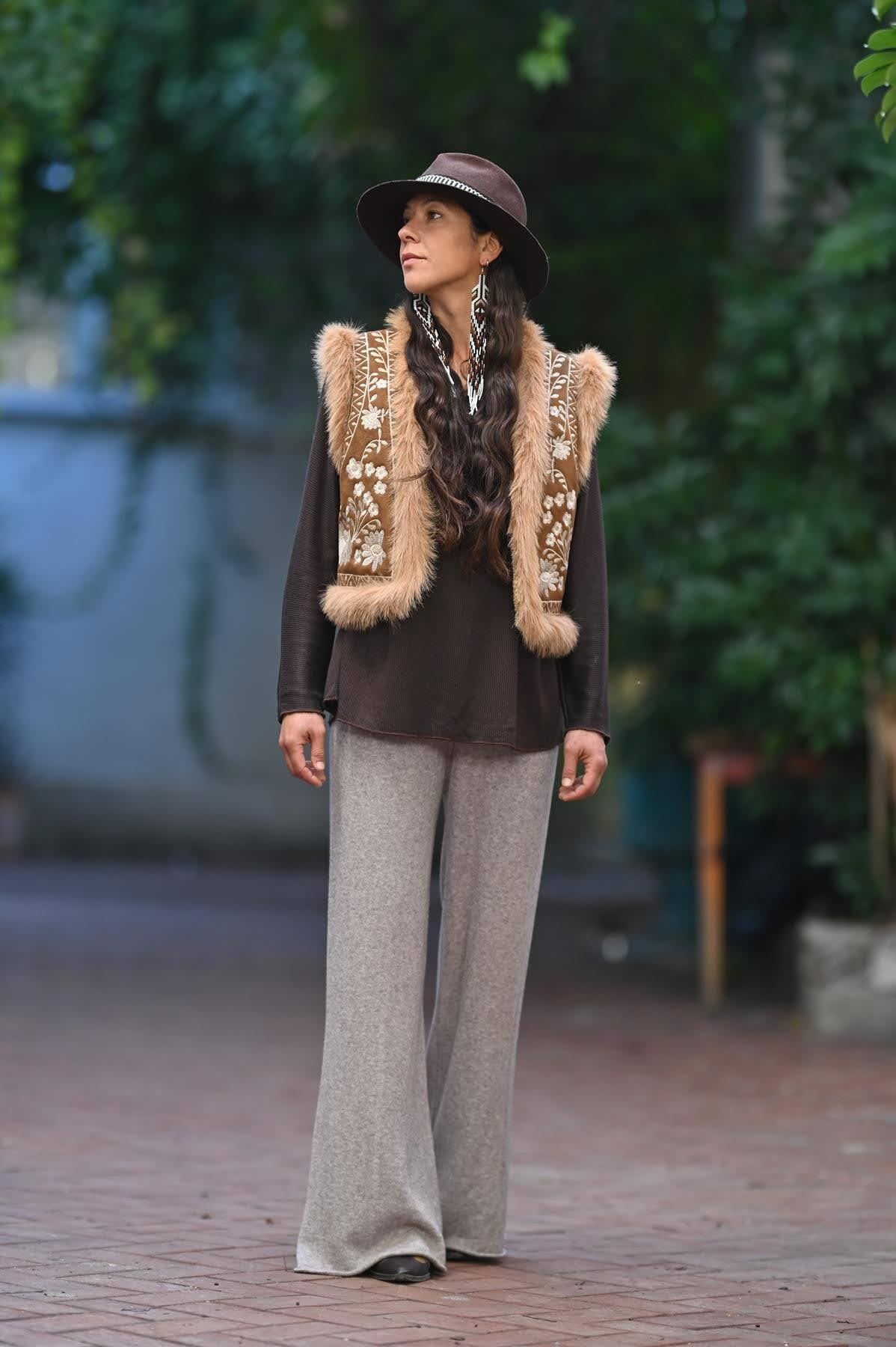 Taba İçi Kürklü Nakışlı Süet Yelek (KY-RBN-003-PO-TAB-36)