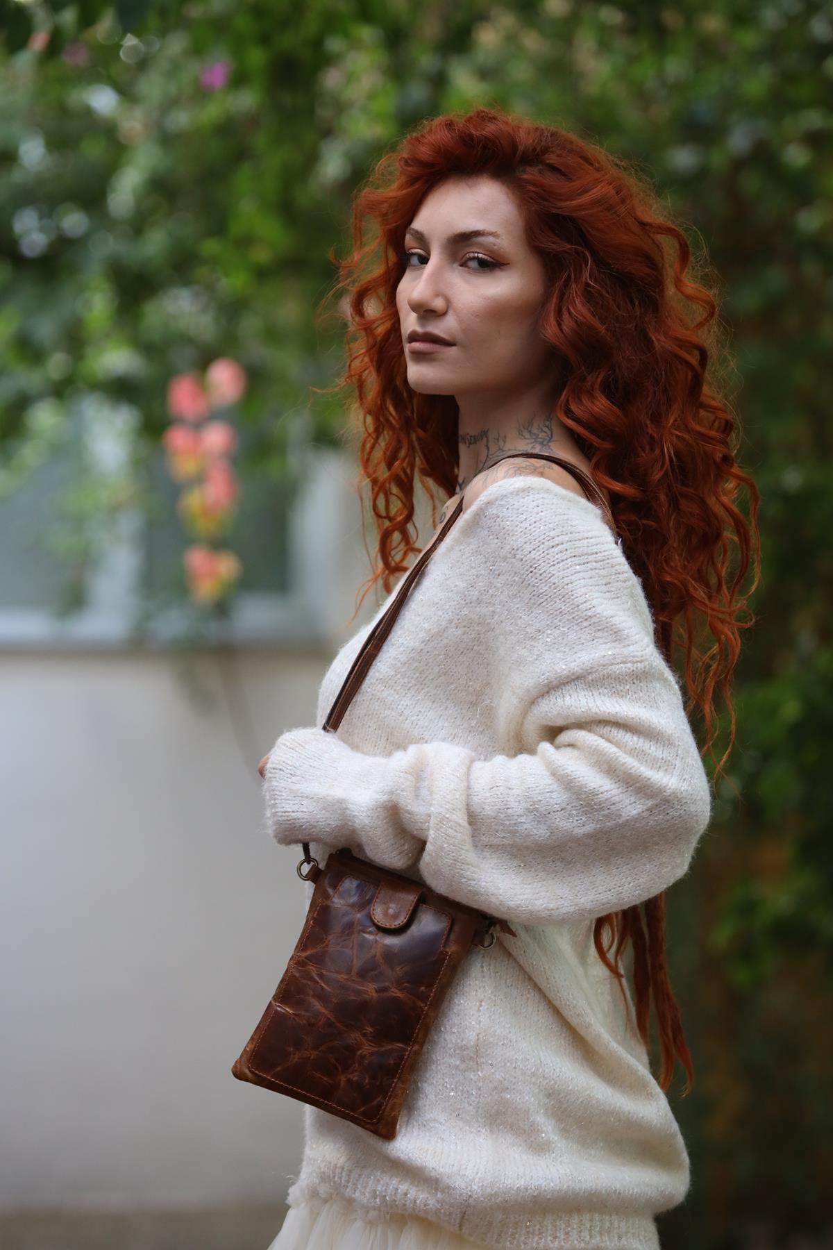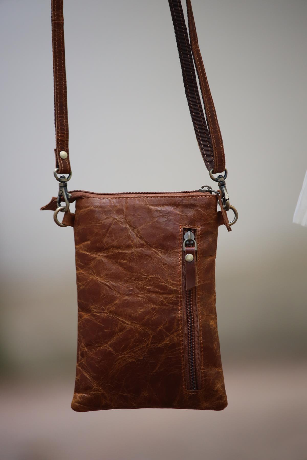 Tan Snap Pocket Zippered Leather Bag (ACNT-AS-043-DE-TAB-STD)