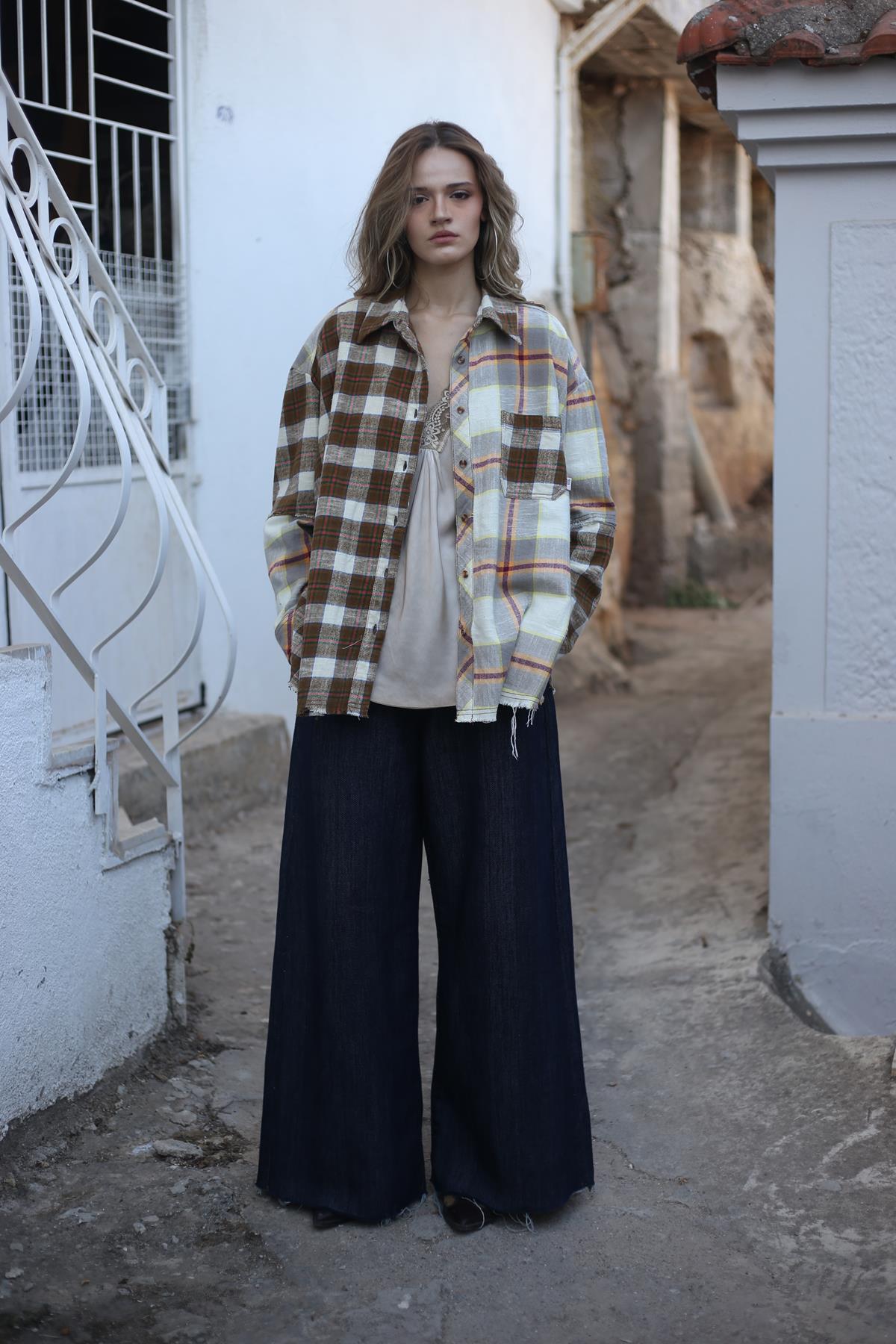 Taş Rengi Ekose Cepli Oduncu Gömlek