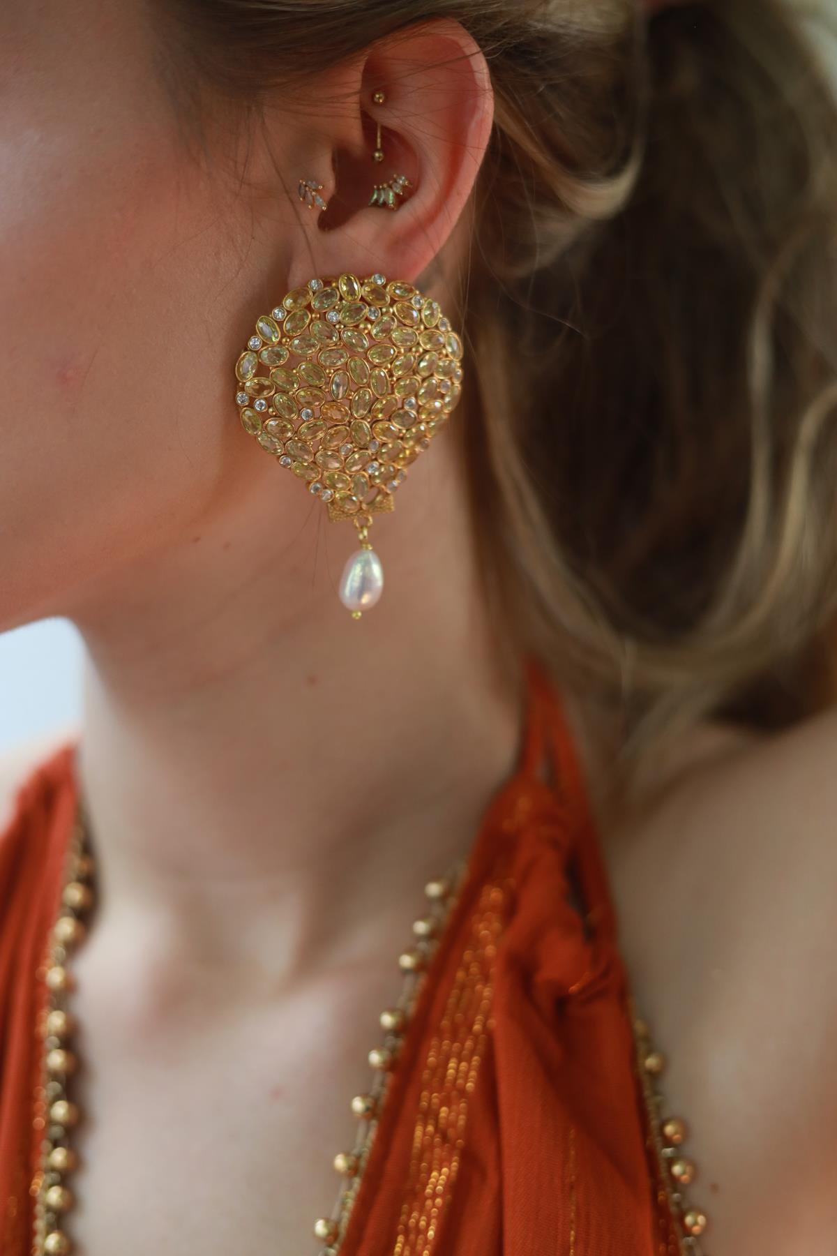 Taşlı İnci Detaylı Balon Küpe