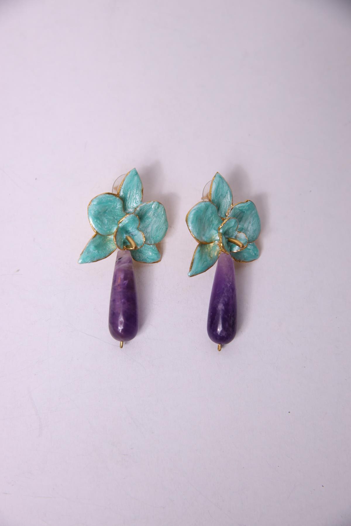Turquoise Enamel Flower Earrings (TA-KU-1039)