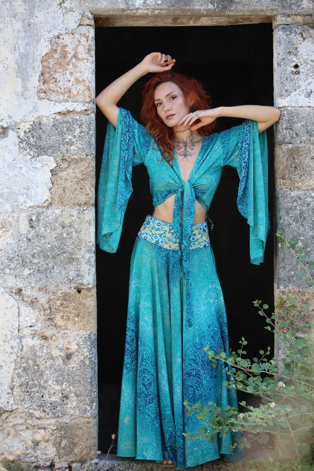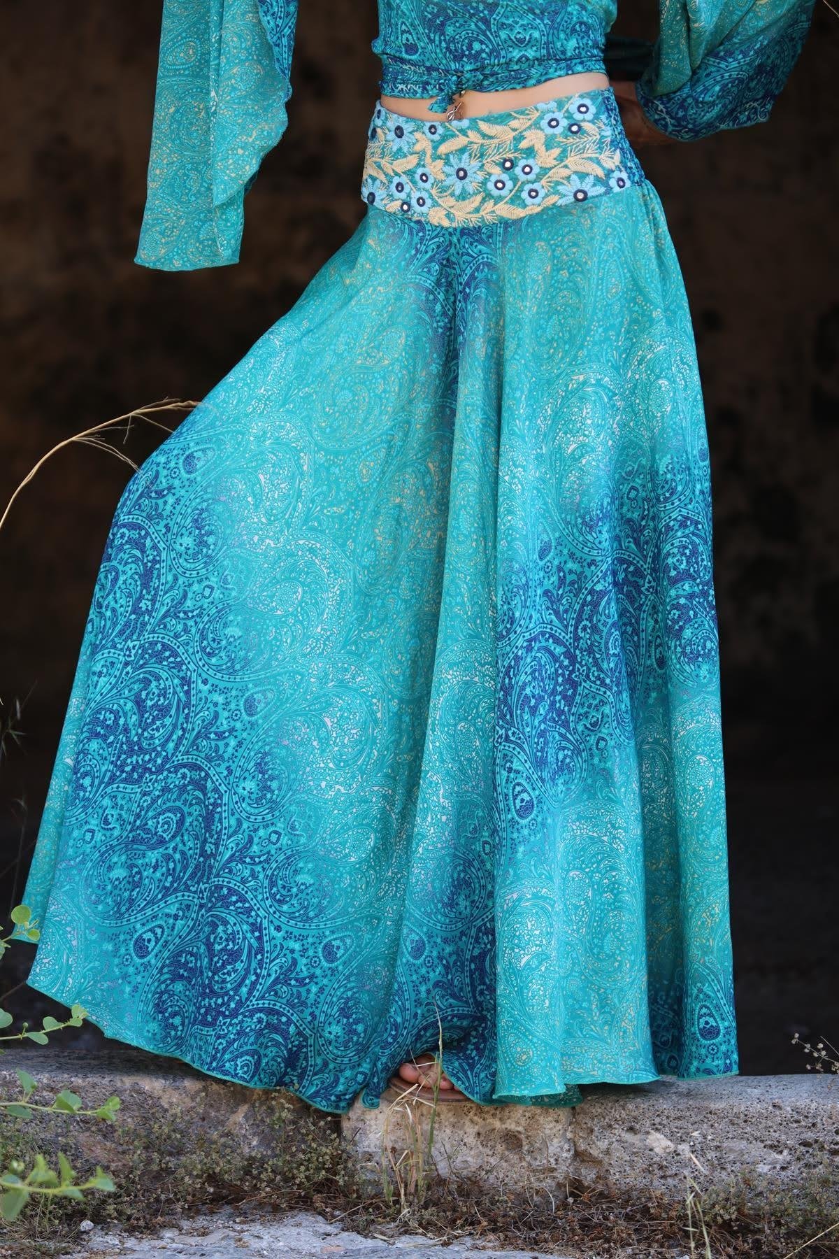 Turquoise Patterned Silk Trouser Skirt (KP-RMR-003-IP-TUR2-STD)