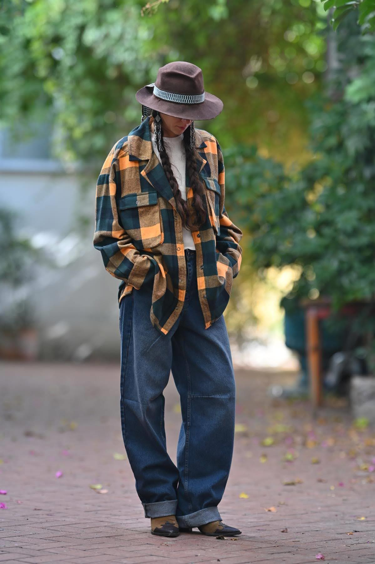 Turuncu Cepleri Kapaklı Çıtçıtlı Oduncu Gömlek