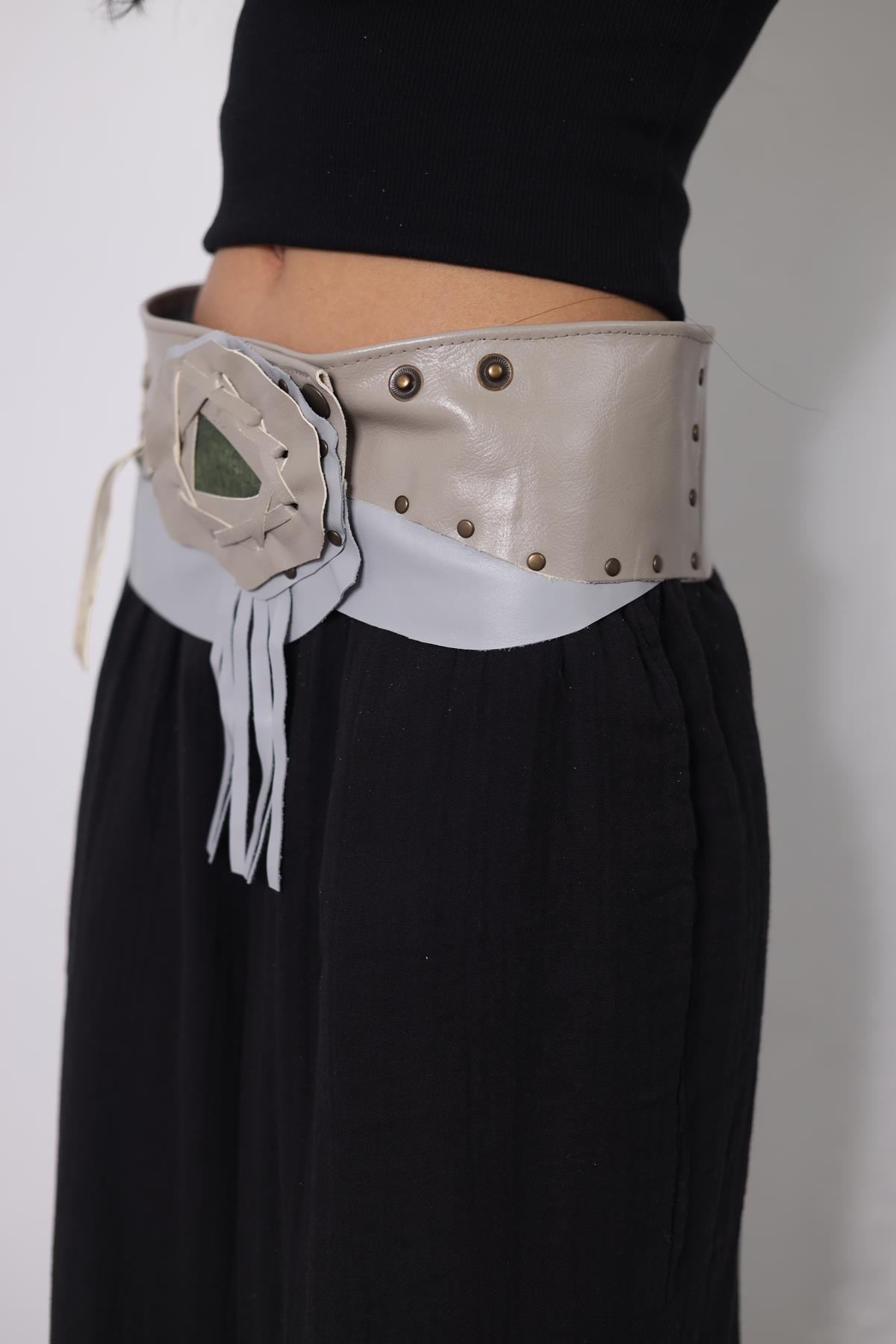 Vizon Rengi Doğal Taşlı Deri Kemer