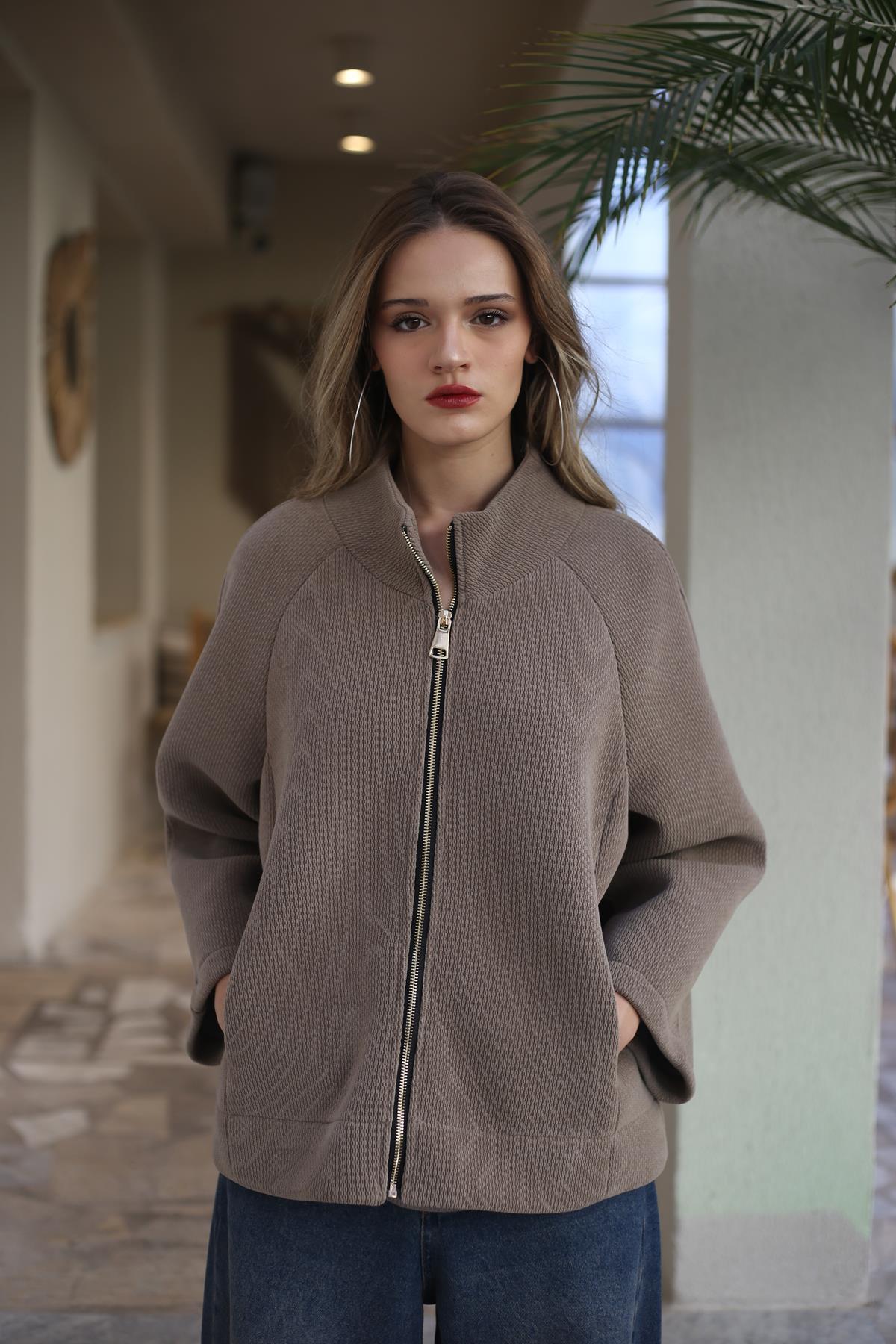 Vizon Rengi Fermuarlı Kısa Ceket (KC-FAL-011-PO-VR-STD)