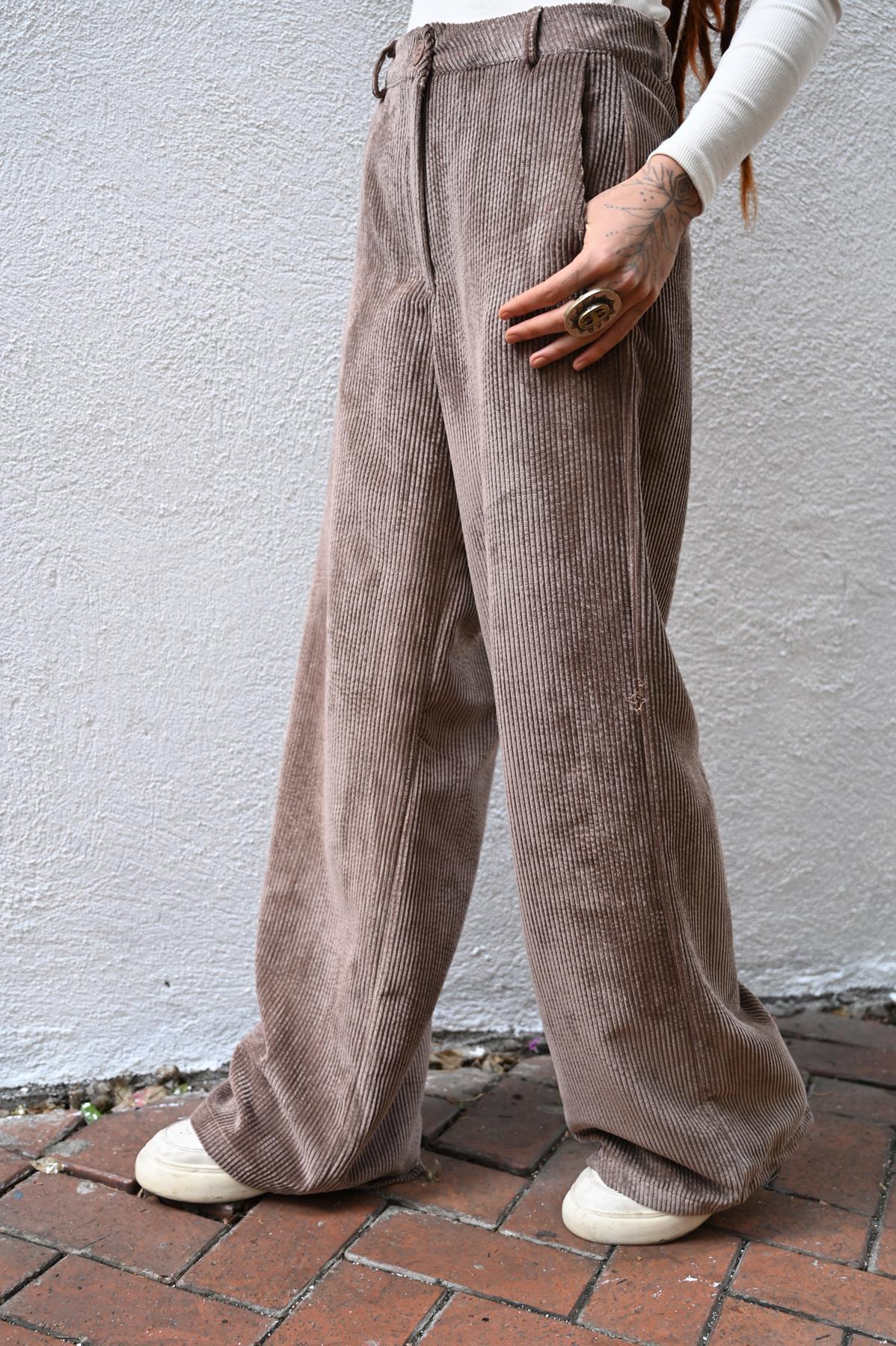 Vizon Rengi Kadife Palazzo Pantolon (KP-CR-016-PA-VR-S)
