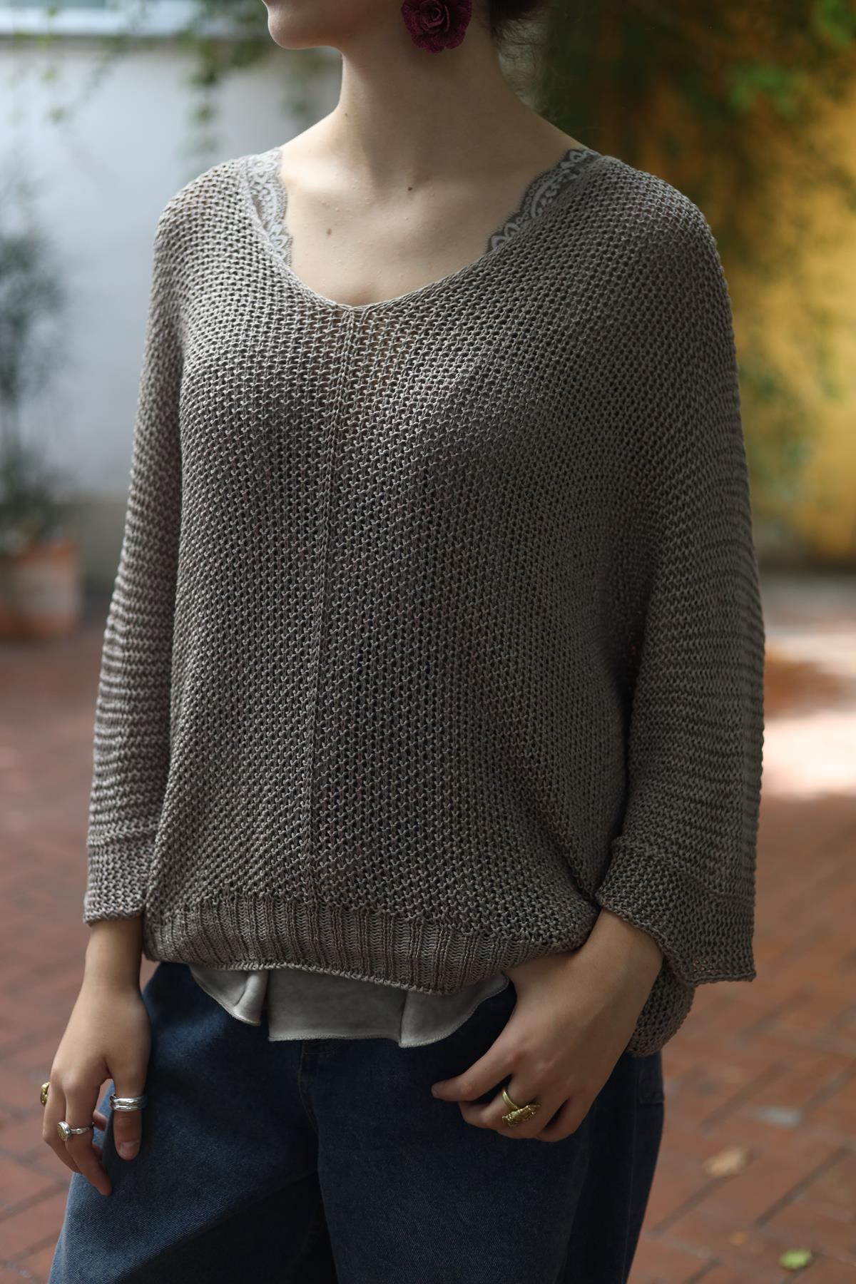 Vizon Rengi Önü Kısa Salaş Triko Bluz