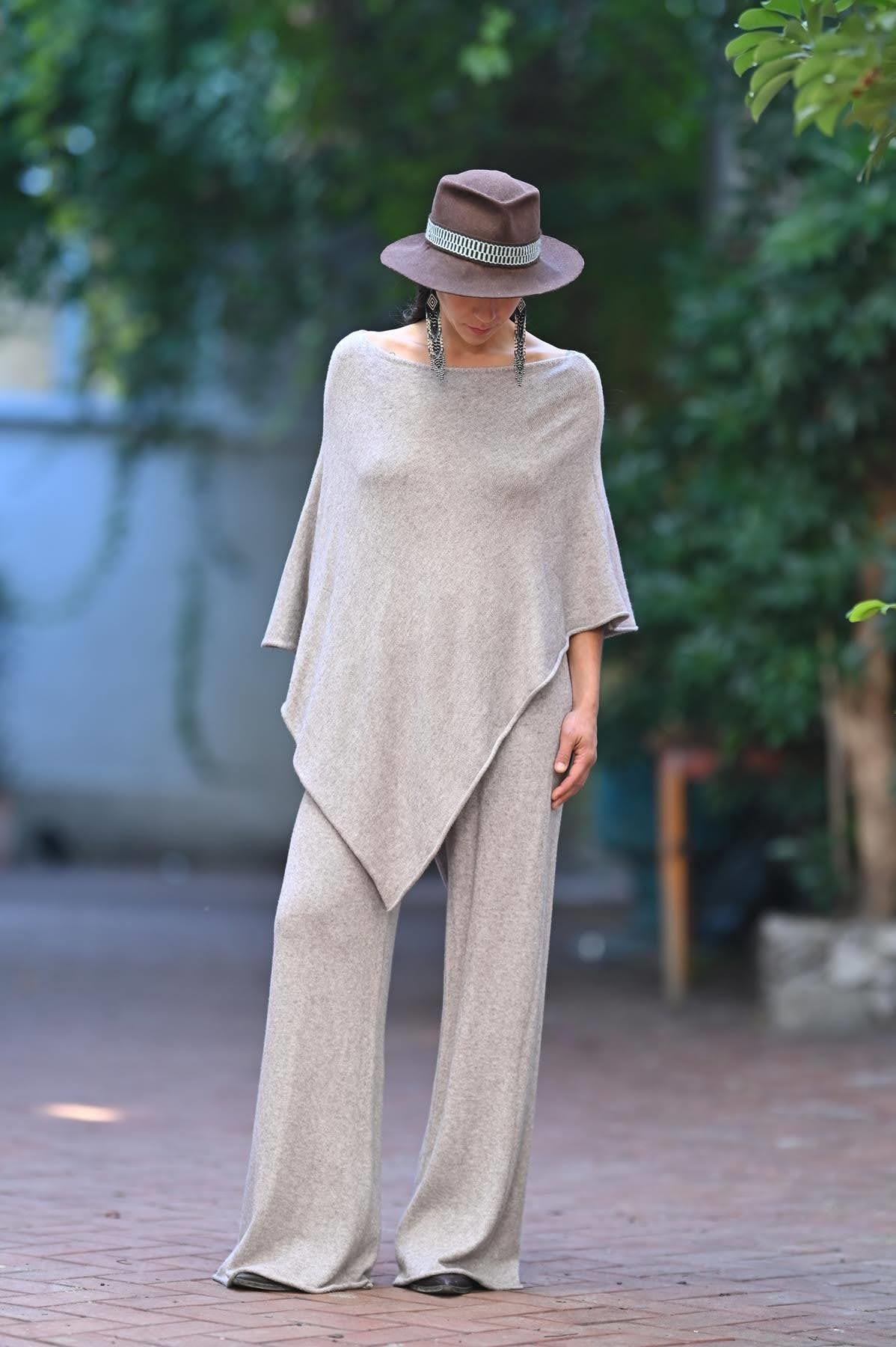 Vizon Rengi Yumuşak Doku Panço ve Pantolon Takım