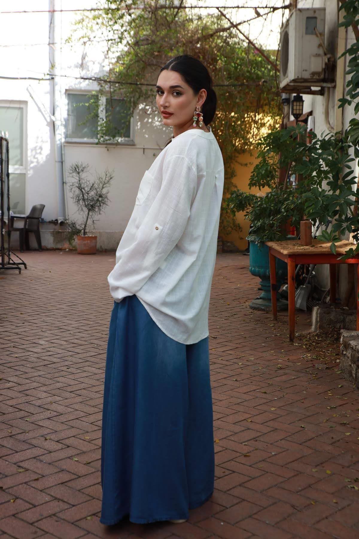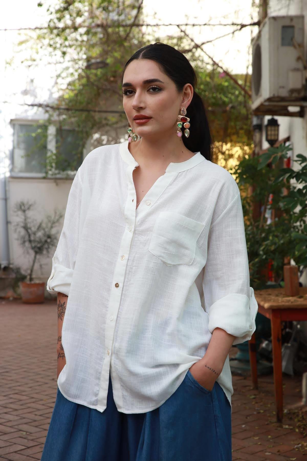 White Mandarin Collar Shirt