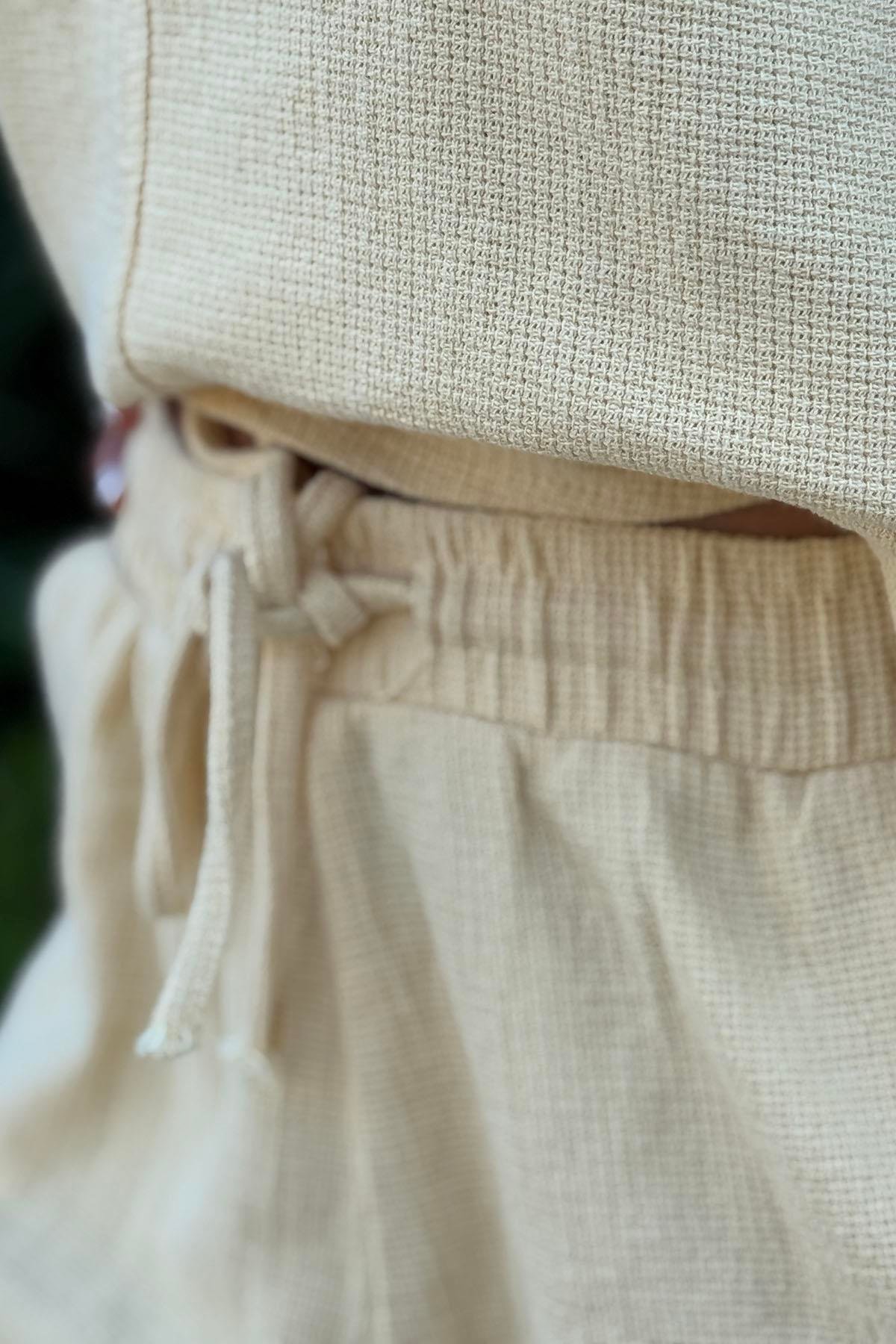 Yellow V Neck Sleeveless Blouse and Shorts Set (KTKM-CR-015-PA-SA-S)